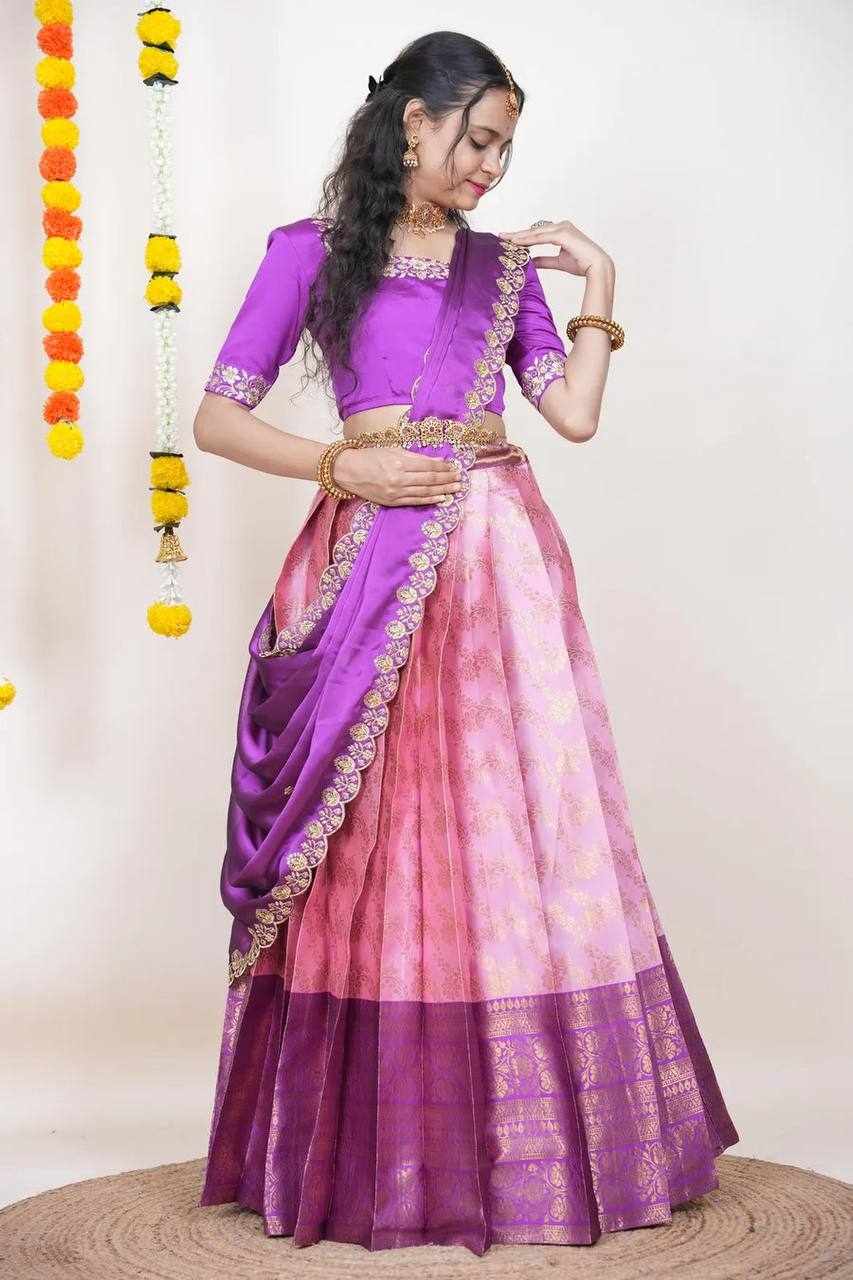 | Name : | KPW 332 Pink Kanjiveram Silk Zari Lehanga |