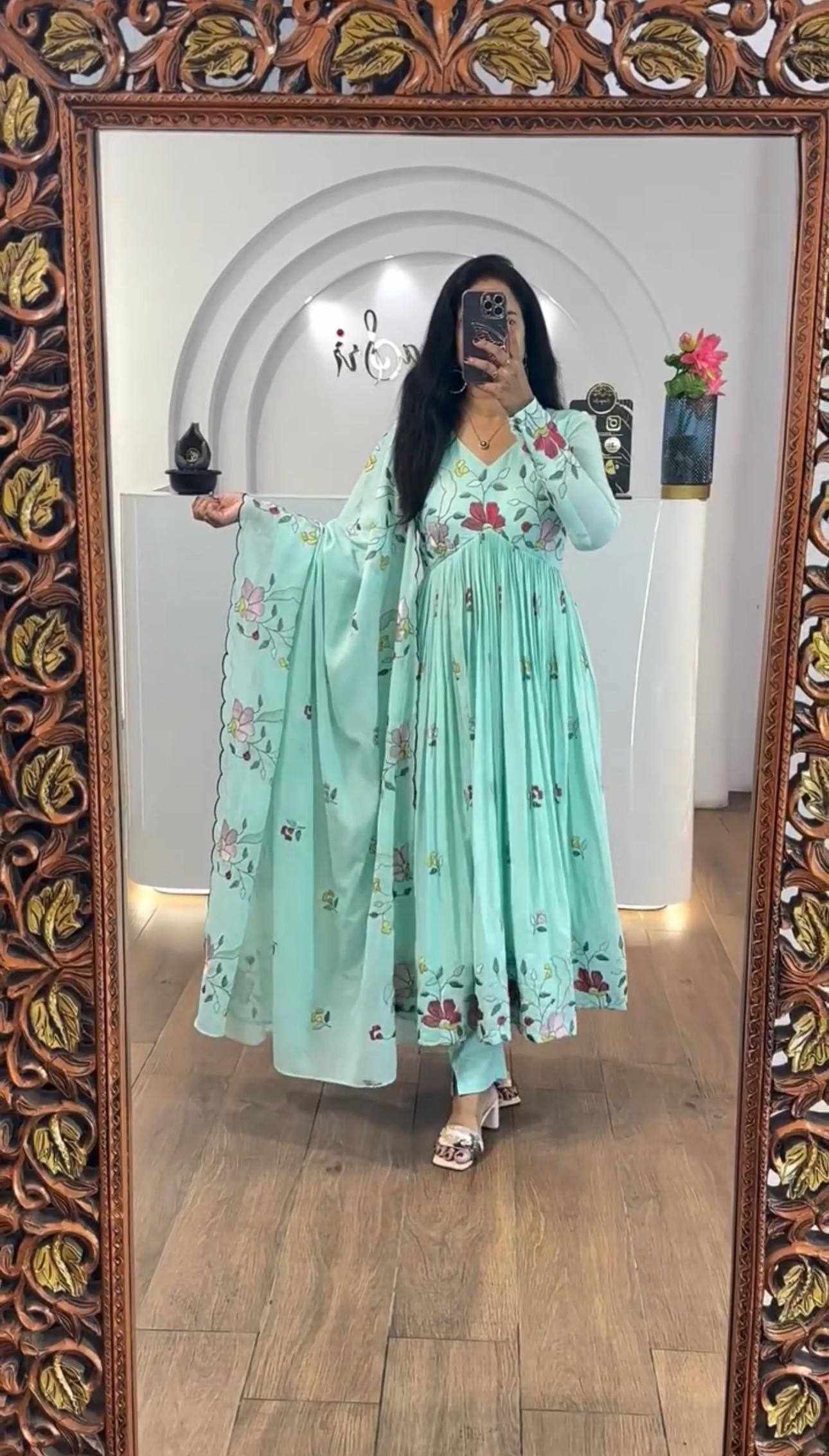 Pc 528 Heavy Embroidery Thread Work Gown